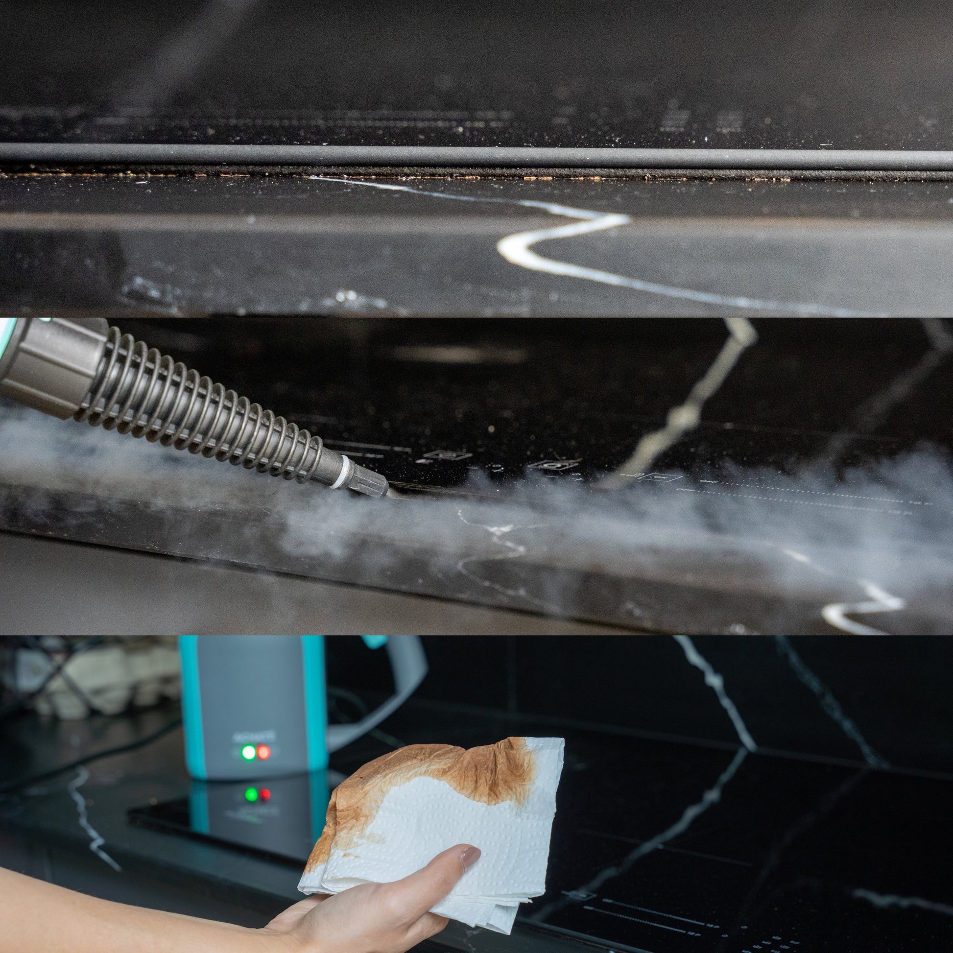 De SteamMaster™ produceert hete stoom die vet, vuil, bacteriën en hardnekkige vlekken losmaakt —